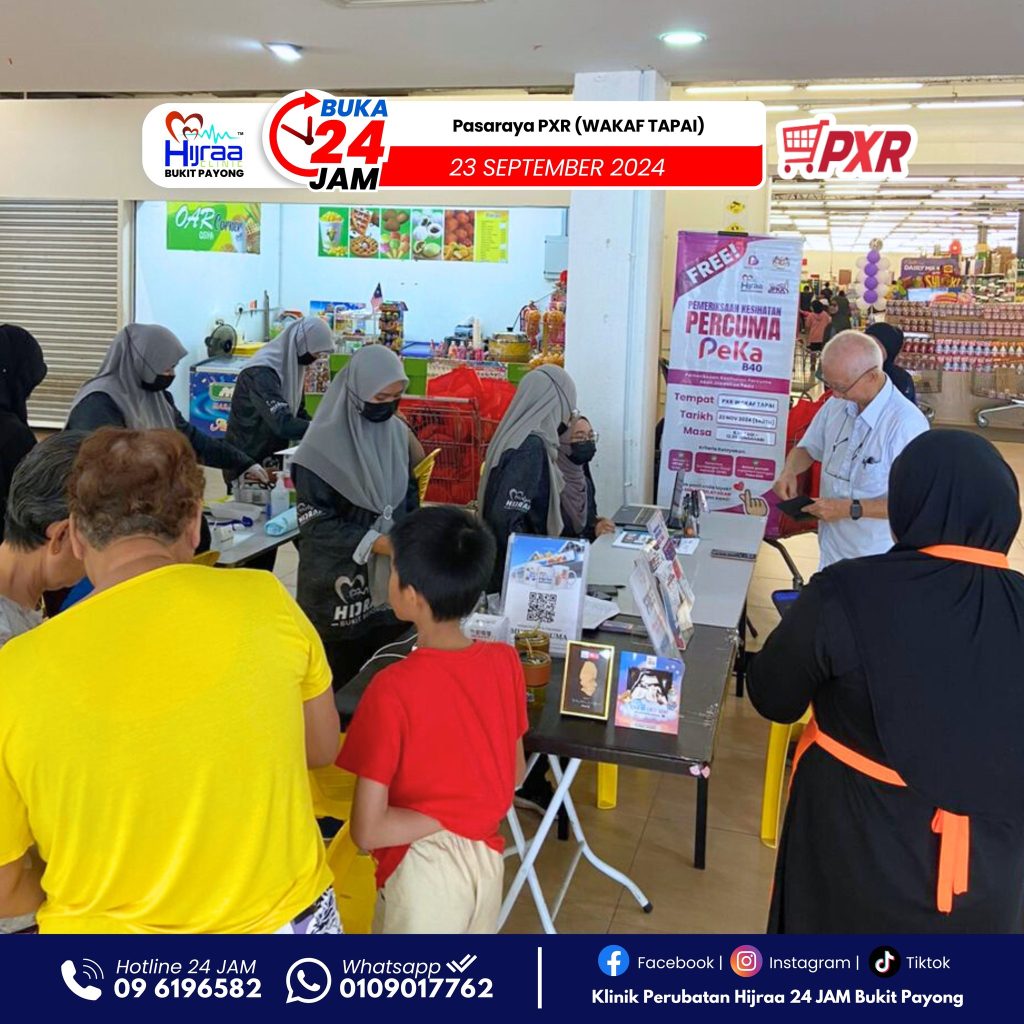 Kepada anda yang berumur 40 tahun ke atas dan tergolong dalam kumpulan B40 – jangan lepaskan peluang bila Klinik Hijraa Bukit Payong hadir ke kawasan anda. Pemeriksaan ini boleh jadi titik mula untuk anda jaga kesihatan dengan lebih bijak.